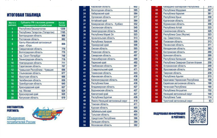 Белгородская область заняла лидирующие позиции в рейтинге в сфере защиты прав потребителей