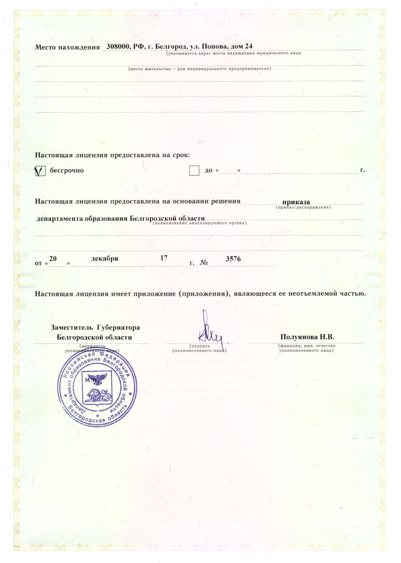 Лицензия на образовательную деятельность